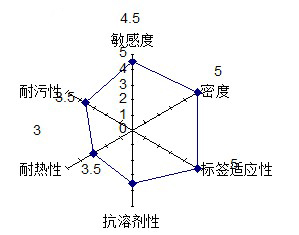 The figure represents the H2000 printed on coated paper tag and label special applications. Performance rating based on mixed base ribbon controls. Level 1 to Level 5,5 best.